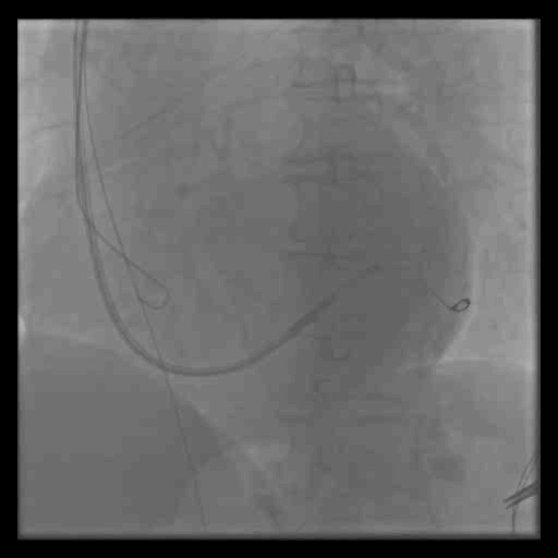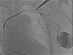 ● 使用6248鞘中鞘辅助加强支撑后顺利沿导丝推送左室电极至靶血管